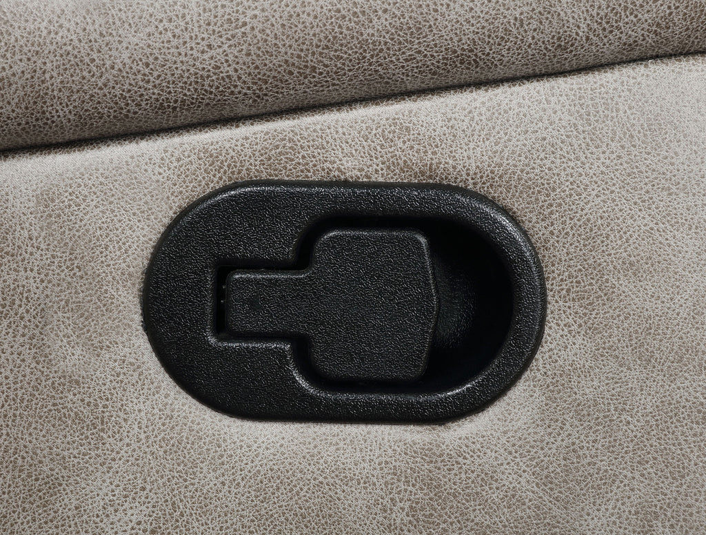This glider loveseat pairs cozy support with clever convenience. Manual reclining seats invite you to unwind as a smooth gliding mechanism soothes between scenes. A center console adds lift-top storage, a pop-up power hub with USB charging, and stainless steel cup holders to keep essentials close. Supportive pocket-coil cushions and memory foam cradle every position. Trim leatherette with contrast stitching covers a durable frame of foam, engineered wood, and heavy gauge metal. Key Features: • Glider loveseat in taupe faux leather with contrast stitching and padded arms • Manual reclining seats deliver easy comfort for shared relaxation time • Smooth gliding motion adds soothing movement between shows or chats • Lift-top console provides storage, pop-up power with two AC and two USB • Two stainless steel cup holders keep refreshments close at hand • Pocket-coil cushions with memory foam ensure supportive, lasting comfort