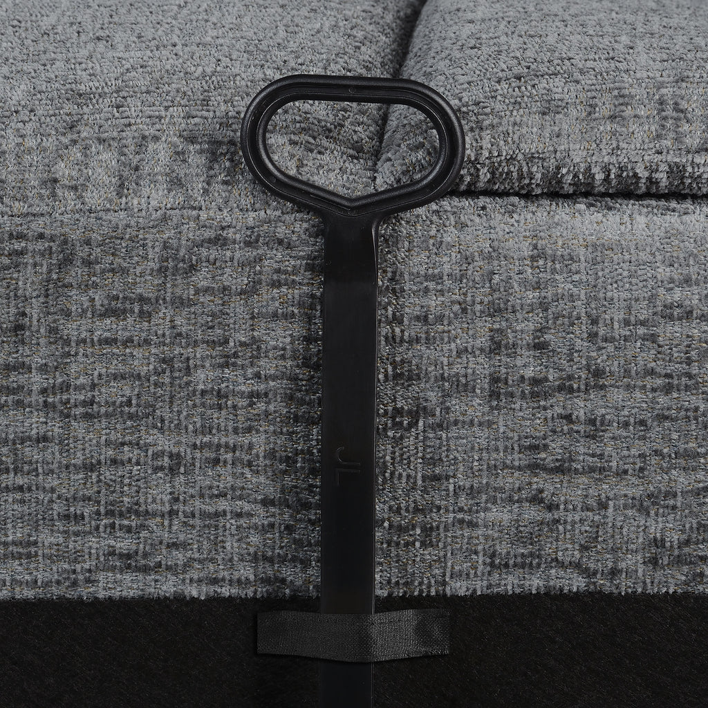 If you've ever dreamed of a movie theater experience in your living room, this three-recliner sofa just may be the answer. It features three recliners, each separated with a storage console that adds a pair of cupholders for fingertip accent to your favorite beverage. Stash charging cables, remotes and more in the consoles for easy access and a tidy space. On each end of the sofa, an extra-thick pillowtop armrest is perfect for curling up. The sofa features plush cushions and supportive seating, all in charcoal gray upholstery that adds neutral color to complement surrounding decor. Key Features: • Three recliners with storage consoles and cupholders for a movie theater experience in your living room • Extra-thick pillowtop armrests on each end for curling up • Plush cushions and supportive seating in charcoal gray upholstery • Storage consoles for easy access to charging cables, remotes and more • Neutral color to complement surrounding decor