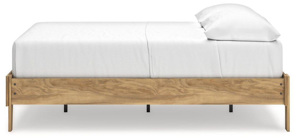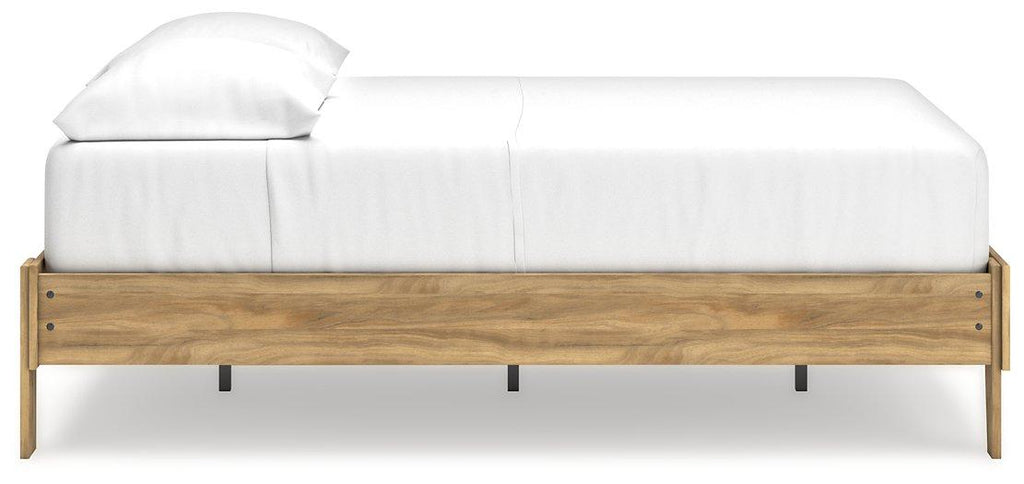 This queen platform bed puts the dream of a casual bedroom retreat beautifully within budget. A warm light brown finish over replicated hickory grain exudes a homey vibe. It’s a simply relaxed way to achieve the sanctuary of your dreams without needing a foundation or box spring.