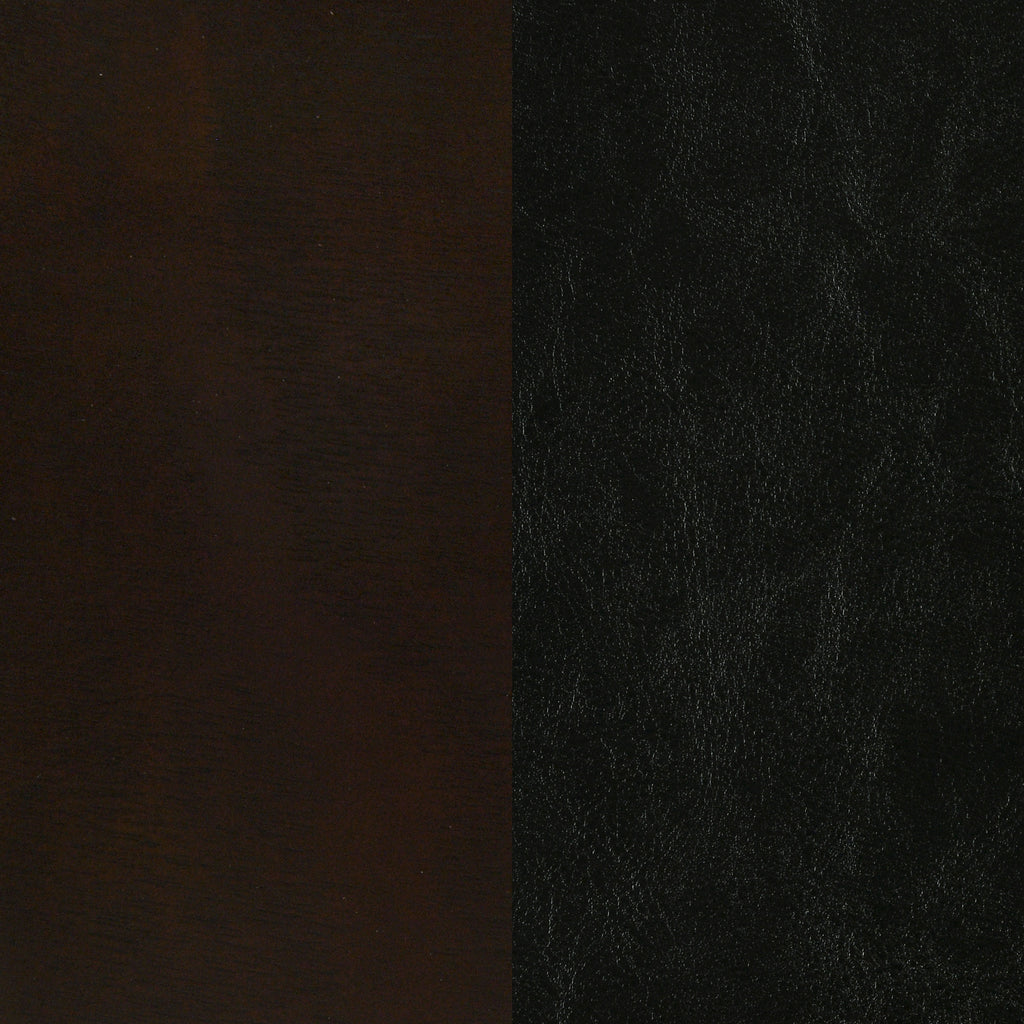 Create a refined retreat with this transitional bedroom set, pairing modern simplicity with timeless craftsmanship. The bed features channel-stitched black leatherette panels framed in a warm cappuccino finish, complemented by clean-lined storage pieces with brushed silver hardware. Each component is crafted from solid wood, veneer, and engineered wood for enduring strength. Blending style and function, this coordinated suite transforms the bedroom into a space of comfort and sophistication._x005F_x000D_ Key Features: • Four-piece bedroom set in cappuccino finish with cohesive design • Bed features black leatherette panels with vertical stitching • Nightstand and dresser offer generous drawer capacity • Mirror’s leatherette trim ties the collection together visually • Constructed from rubberwood, veneer, and engineered wood • Metal hardware creates contrast and ease of use