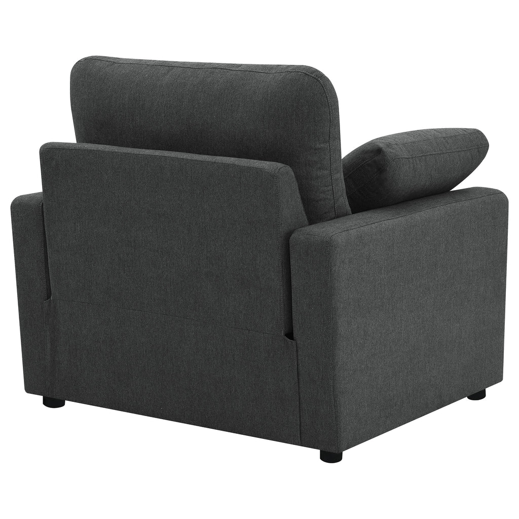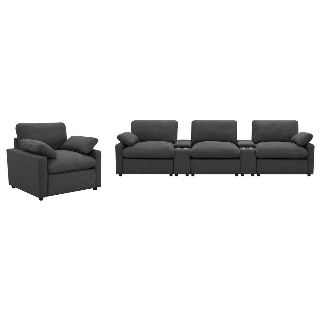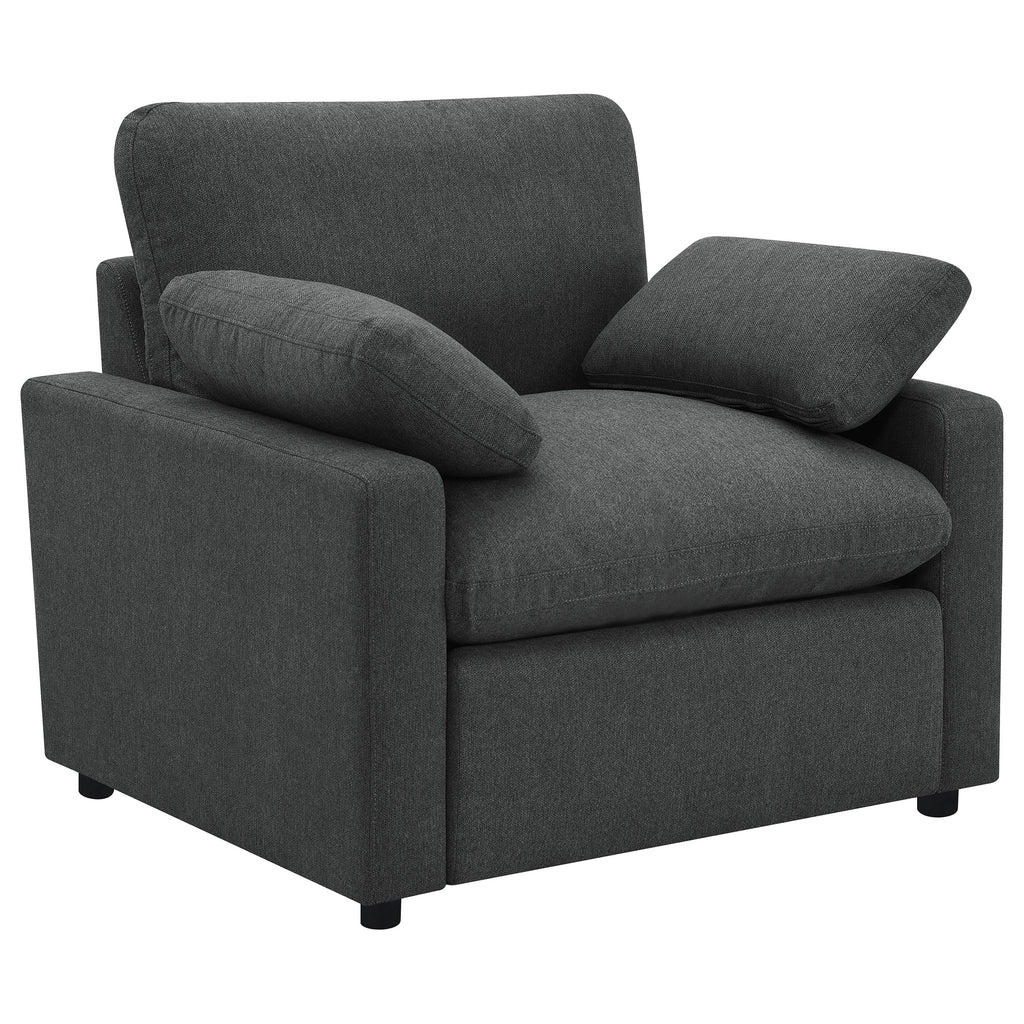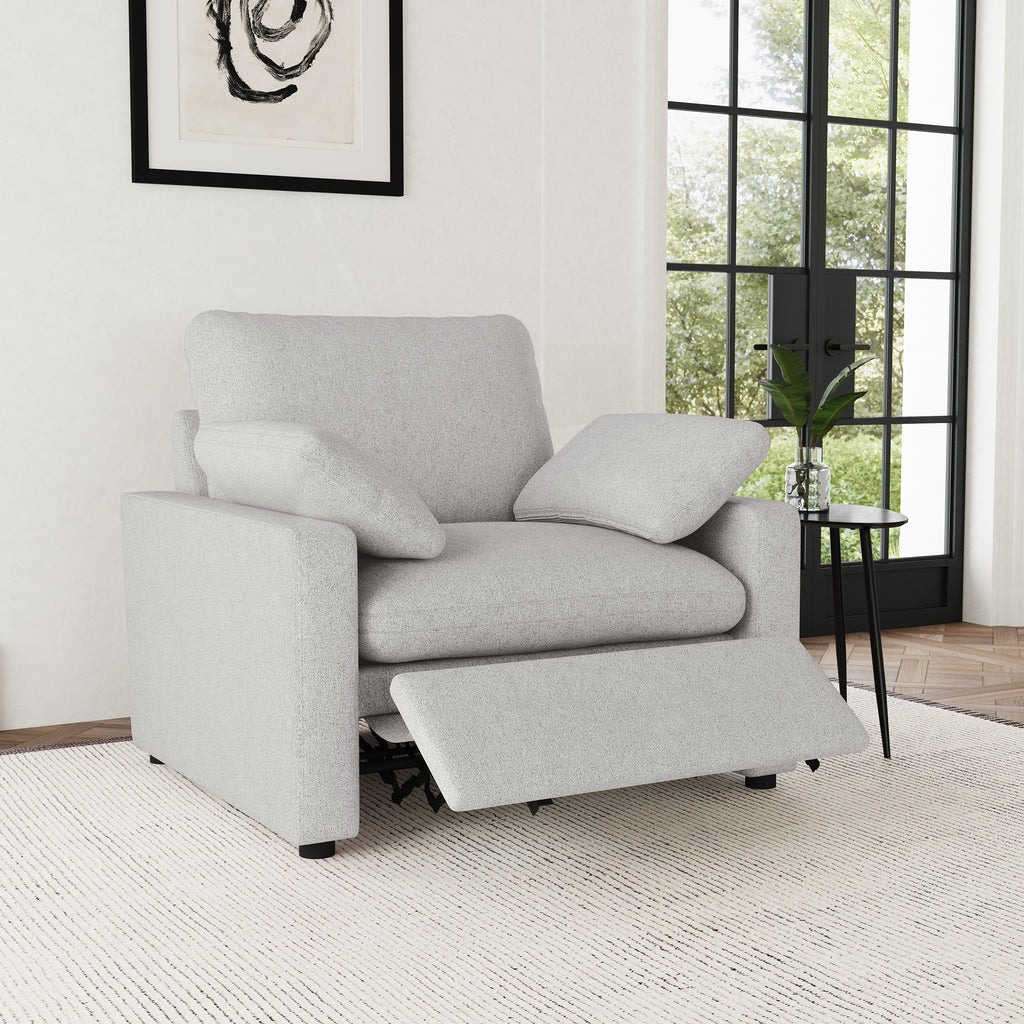Experience ultimate relaxation with this recliner chair, designed for both comfort and functionality. Featuring a power reclining mechanism with a wall-hugging design, it provides a full recline without requiring excessive space. Plush cushions offer exceptional support, while the modular design allows seamless integration into your existing living room setup or as a standalone piece. Perfect for creating a cozy seating arrangement tailored to your needs. Key Features: • Recliner chair designed for modular sectional compatibility • Features a power reclining mechanism with a space-saving wall-hugging design • Plush cushioning delivers exceptional comfort and relaxation • Upholstered in coordinating dark grey fabric for a modern aesthetic • Built with durability in mind for everyday use • Pairs perfectly with dark grey sectionals or functions as a standalone piece