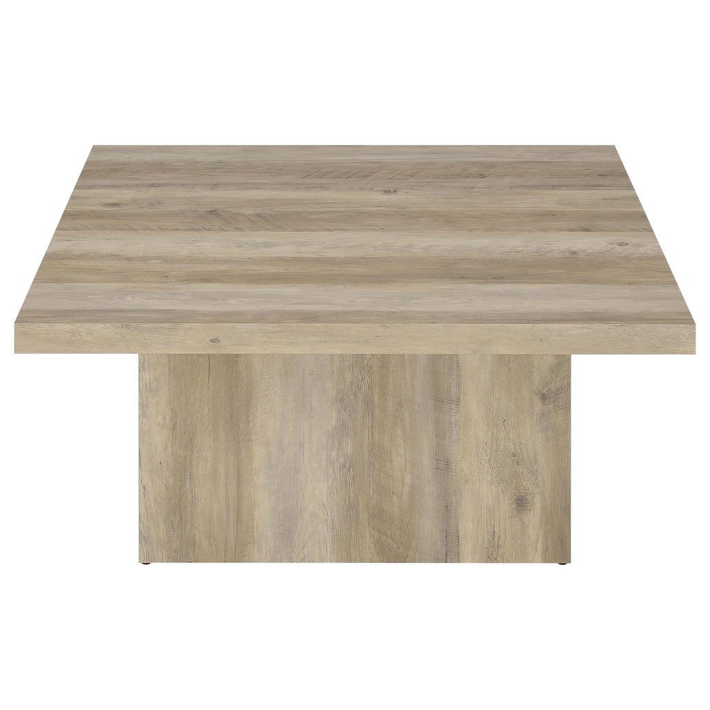 This coffee table set combines the natural beauty of engineered wood with a rustic mango finish. The sleek, square tables feature clean lines and oversized block bases, providing a sturdy and stylish design that enhances casual living spaces. The laminate veneer offers a wood grain appearance, reflecting an earthy, organic vibe that works well in relaxed, contemporary rooms. These occasional tables are ideal for creating a cohesive and functional centerpiece in your living area. Key Features: • Coffee table set made from engineered wood with laminate veneer for durability • Features a natural mango wood look with grain markings for a rustic touch • Spacious square tops offer ample surface area for decor or everyday items • Oversized block bases provide a stable, grounded design • Eco-friendly laminate veneer offers a scratch-resistant surface for easy care • Versatile design works well in both standalone and paired configurations