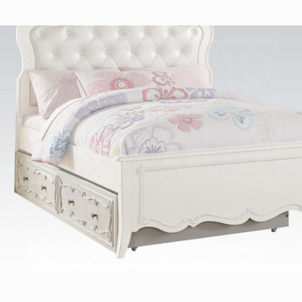 ACME Edalene Jewelry Armoire, Pearl White, 28" x 20" x 65"H, 55lbs. Features: - Cheval Style Jewelry Armoire - Beveled Mirror - Sliding Mirror Door w/Scrolled Inlay Detail, Metal Glide Opening & Tilt Function - Jewelry Storage: Necklace Hooks - Scrolled Wooden Leg Materials: Wood, Mirror