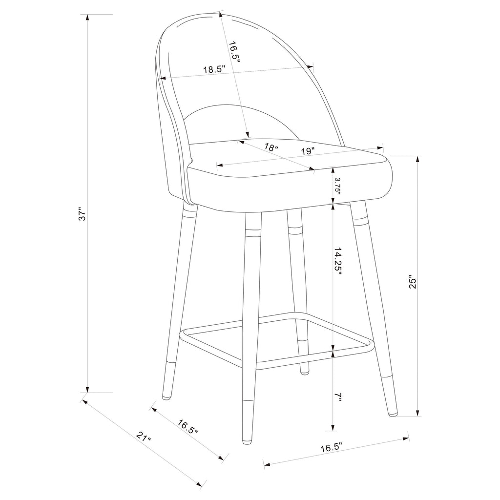 Perfect for contemporary entertainment areas, this chic, modern, glam counter height set hosts four guests comfortably. A round, clear glass top and round, column-inspired pedestal base float elegantly within your spacious room or breakfast nook. The pedestal table base boasts a brilliant faux diamond inlay and mirror tile that shimmers stunningly. Four counter height chairs feature open rounded backs upholstered in soft and smooth velvet for extra comfort and support. Each seat rests on slender legs, complete with golden metallic accents and a sturdy footrest for a dramatic contrast and glam touch.