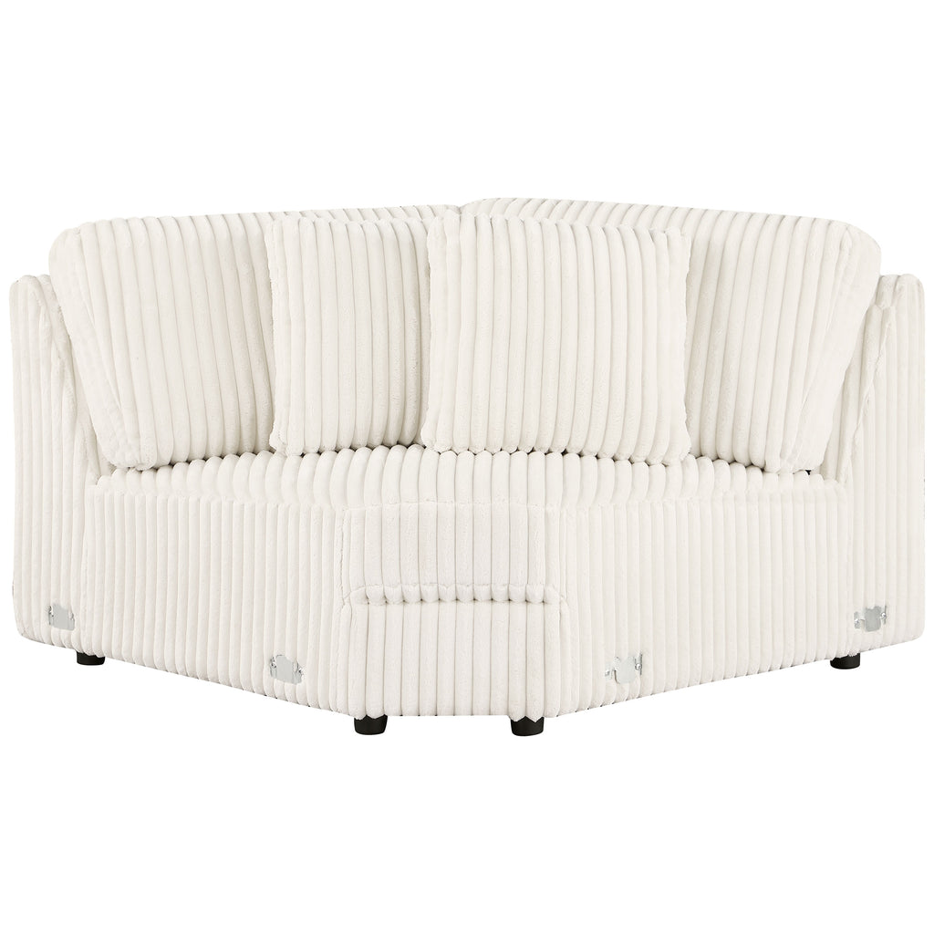 Create a seamless curve in your modular sectional with the versatile wedge piece. Upholstered in ivory wide corduroy, it offers a plush texture and includes two pillows for added support, enhancing both comfort and style.