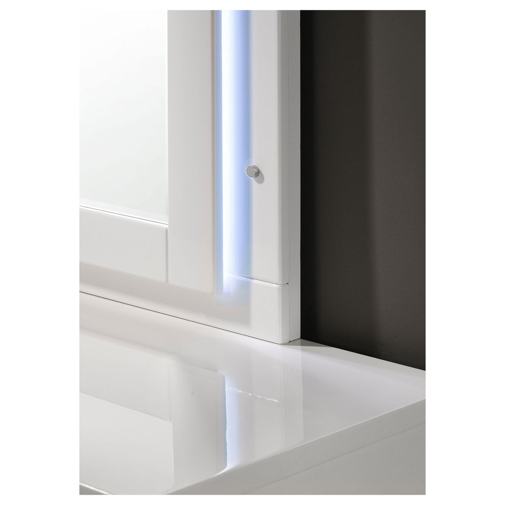 Elevate your bedroom with the sleek sophistication of this contemporary bedroom set. The panel bed features a clean-lined white high gloss headboard and a faux leather upholstered frame, delivering a refined yet modern aesthetic. Chrome-finished accents add a polished touch, while smooth-gliding drawers ensure effortless functionality. Designed for both style and durability, this set brings a fresh, minimalist feel to any space. Key Features: • Modern bedroom set showcasing a sleek and minimalist panel bed design • White high gloss headboard provides a clean, polished, and contemporary look • Bed frame upholstered in smooth, durable, and soft faux leather for comfort • Storage pieces feature spacious drawers with smooth metal extension glides • Chrome-finished metal handles and feet enhance the sleek, modern aesthetic • Designed for long-lasting durability while offering everyday functionality