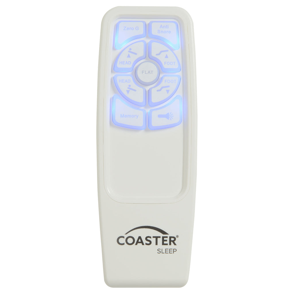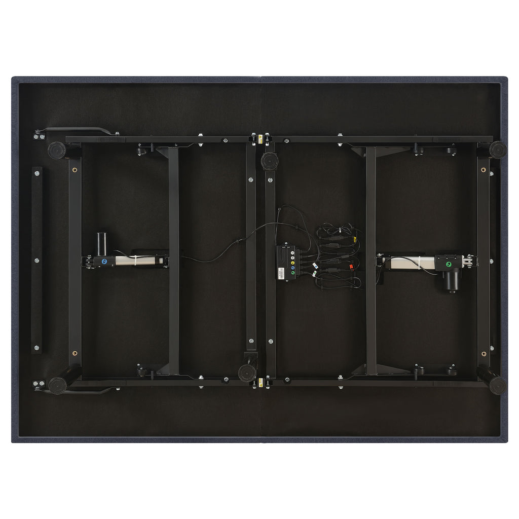 Experience personalized comfort with this adjustable bed base, designed to transform your bedroom into a space of relaxation and support. Upholstered in a modern two-tone fabric with a sturdy black metal frame, it blends seamlessly with any decor. A wireless remote with backlit soft-touch controls makes it easy to adjust the head and foot incline, with preset positions including Zero Gravity, Anti-Snore, Flat, and Memory. Tool-free assembly takes only minutes, while versatile 3-in-1 legs provide multiple height options and ample under-bed storage._x005F_x000D_ Key Features: • Queen adjustable bed base with ergonomic presets for customized sleep comfort • Wireless remote with backlit soft-touch controls and integrated flashlight • Head and foot incline with Zero Gravity, Anti-Snore, Flat, and Memory settings • 3-in-1 adjustable legs with height options of three, six, nine, or twelve inches • Quick five-minute tool-free assembly with intuitive design and easy setup • Emergency power-down plus ten-year mechanism and two-year full warranty