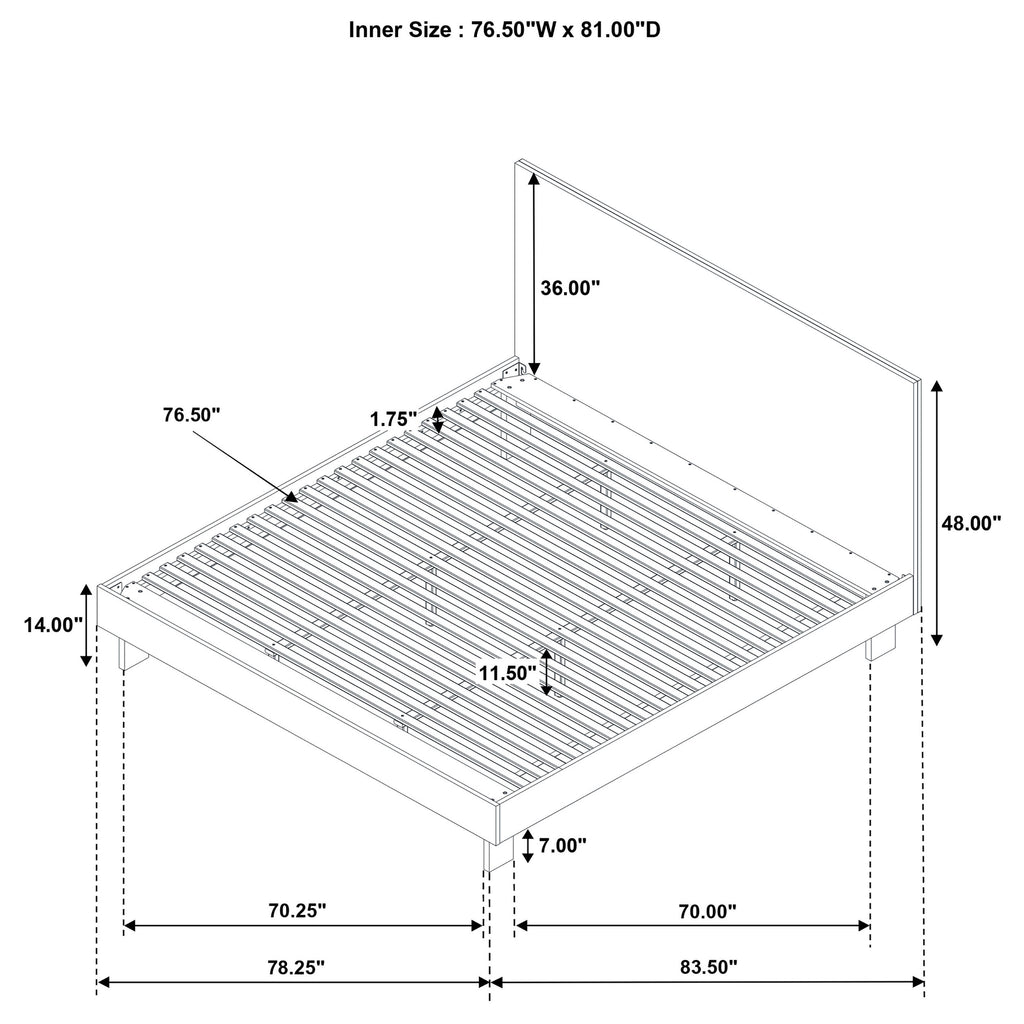 Reimagine a stylish retreat from the world with this modern wooden platform bed at the center of your bedroom. It showcases a panel headboard design with low rails, all in a warm brown finish over solid wood with a subtle grain pattern. The bed features a center rail for added support, creating an inviting sleeping space for guest and primary suites alike. The bed is a clean, straightforward design. Its headboard shows off square corners and a flat panel, perfect for definition without overwhelming surrounding decor. Key Features: • Clean, straightforward design details bring stylish flair to a modern wooden platform bed • Crafted from solid wood in a warm brown finish • A platform headboard is tall and solid, complete with sharp square corners for a handsome look • Low rails and footboard create an open, airy presentation in your bedroom • This bed frame includes a center rail for added support and structural integrity