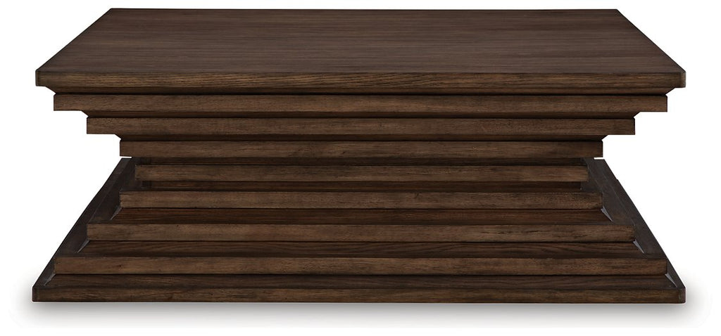 A statement-making table? Yes, please. The distinctive silhouette of this coffee table is sure to captivate lovers of contemporary design. Featuring head-turning architectural geometry and a rich, inviting warm brown finish, this piece is ready to take your decor to the next level. And to the next room, thanks to its handy casters.