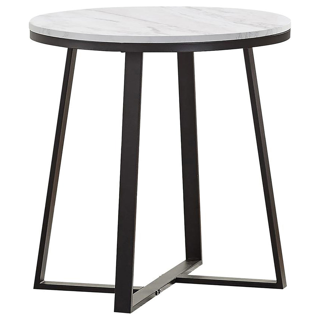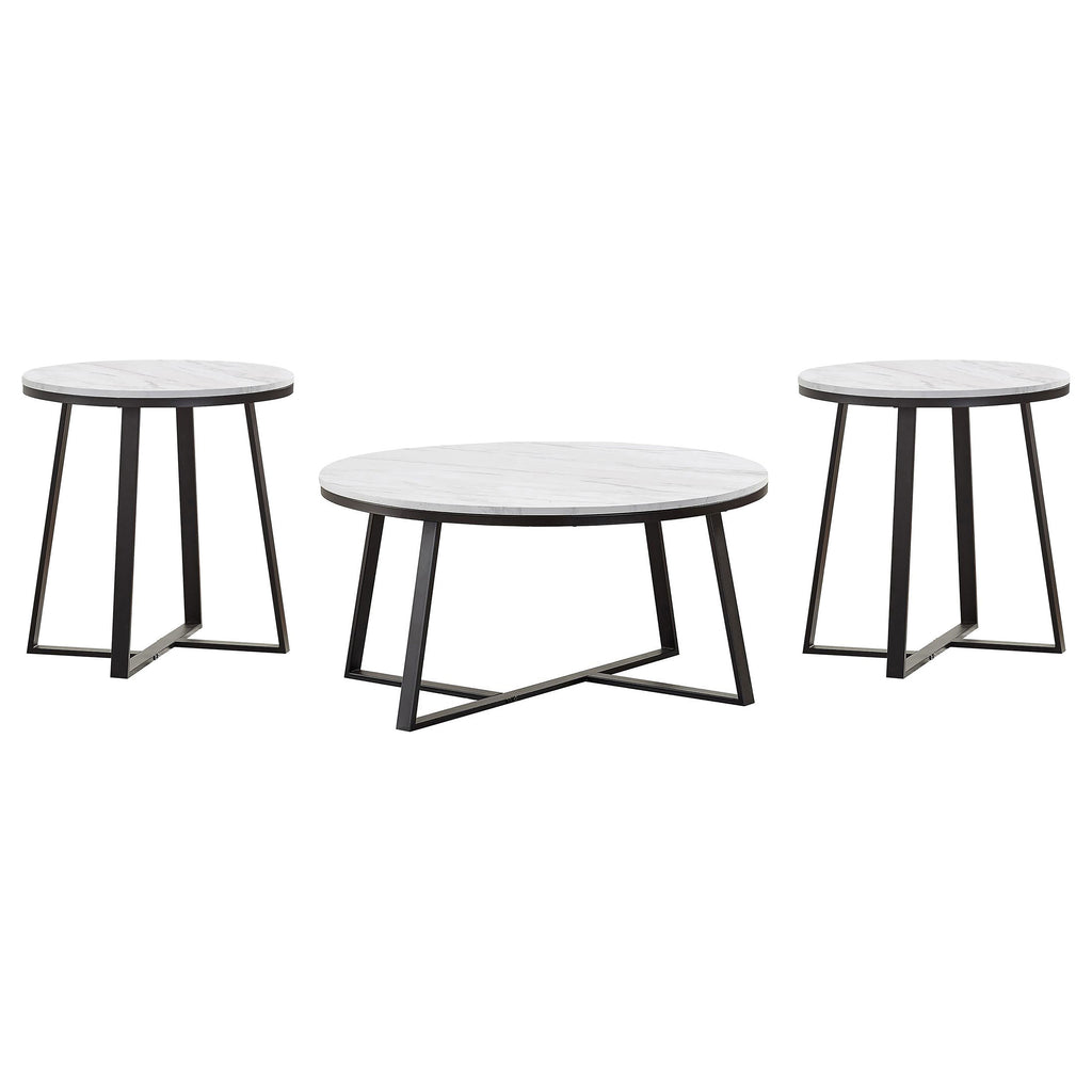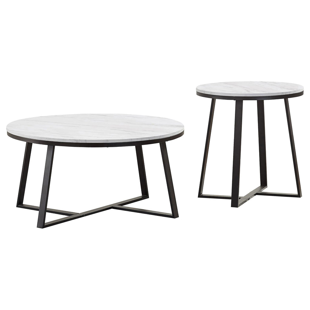 This coffee table set offers a stylish two-tone design that enhances modern living rooms with ease. Featuring round tabletops crafted from white faux marble and subtle grey veining, these tables exude elegance. The intersecting U-shaped legs in matte black powder-coated metal form a striking geometric silhouette. Constructed with engineered wood, PVC laminate, and heavy-gauge metal, the set ensures both durability and contemporary appeal. Ideal as a cohesive centerpiece for any living space. Key Features: • Coffee table set with a modern two-tone design for stylish living room upgrades • White faux marble tabletops with grey veining bring refined elegance to the space • Angular U-shaped legs create a bold, eye-catching geometric silhouette • Durable matte black powder-coated base adds sleek contrast and stability • Crafted from engineered wood, PVC laminate, and heavy-gauge metal for reliability • Perfectly balances function and style, enhancing contemporary living spaces