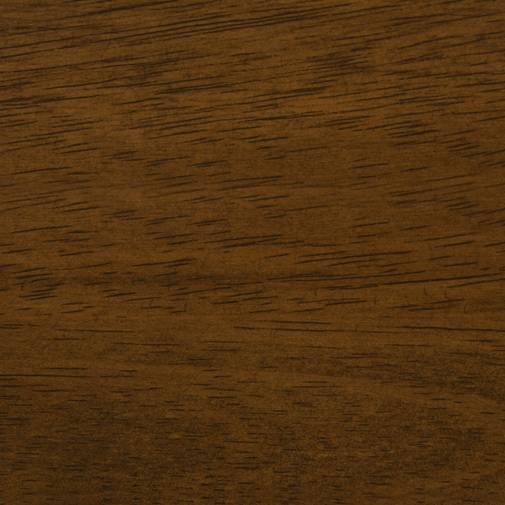 Craft a modern motif with the clean lines and retro-like feel of this five-piece dining set. Mid-century modern design gets a contemporary makeover with overtly angled details. Thin, tapered legs and angles marry on both the table and four side chairs. Open and visually interesting, the chairs feature warm brown upholstery along the seat and back. Charming details and design create a clean set that looks great in large and small spaces. Key Features: • Five-piece dining table set features rectangular table and four matching side chairs • Dark walnut wood finish adds a rich tone to the mid-century modern dining aesthetic • Chairs include gently curved backrests with angled legs and low-profile arms • Upholstered seating in warm brown fabric with subtle texture for added comfort • Constructed from solid rubberwood, engineered wood, and walnut veneer • Polyester-cotton blend upholstery offers a soft touch with easy maintenance