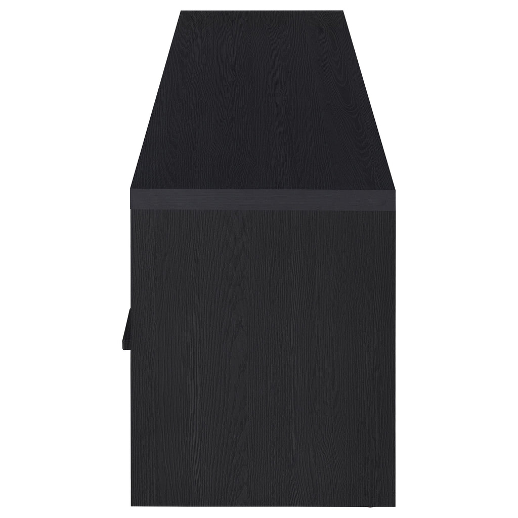 This 70-inch modern TV console entertainment center combines style and function with a durable engineered wood build and eco-friendly paper laminate veneer. The scratch-resistant surface ensures long-lasting durability, while its clean design features two doors for concealed storage, an open cubby for devices, and a single drawer for organization. With ample space to support large TVs up to 75 inches, this media console offers a practical and sleek solution for your entertainment setup. Key Features: • 70-inch TV stand for large screens • Engineered wood with black finish eco-friendly paper laminate veneer • Scratch-resistant surface for lasting durability • Two doors for concealed storage • Open cubby for devices or media players • One drawer for organized accessory storage