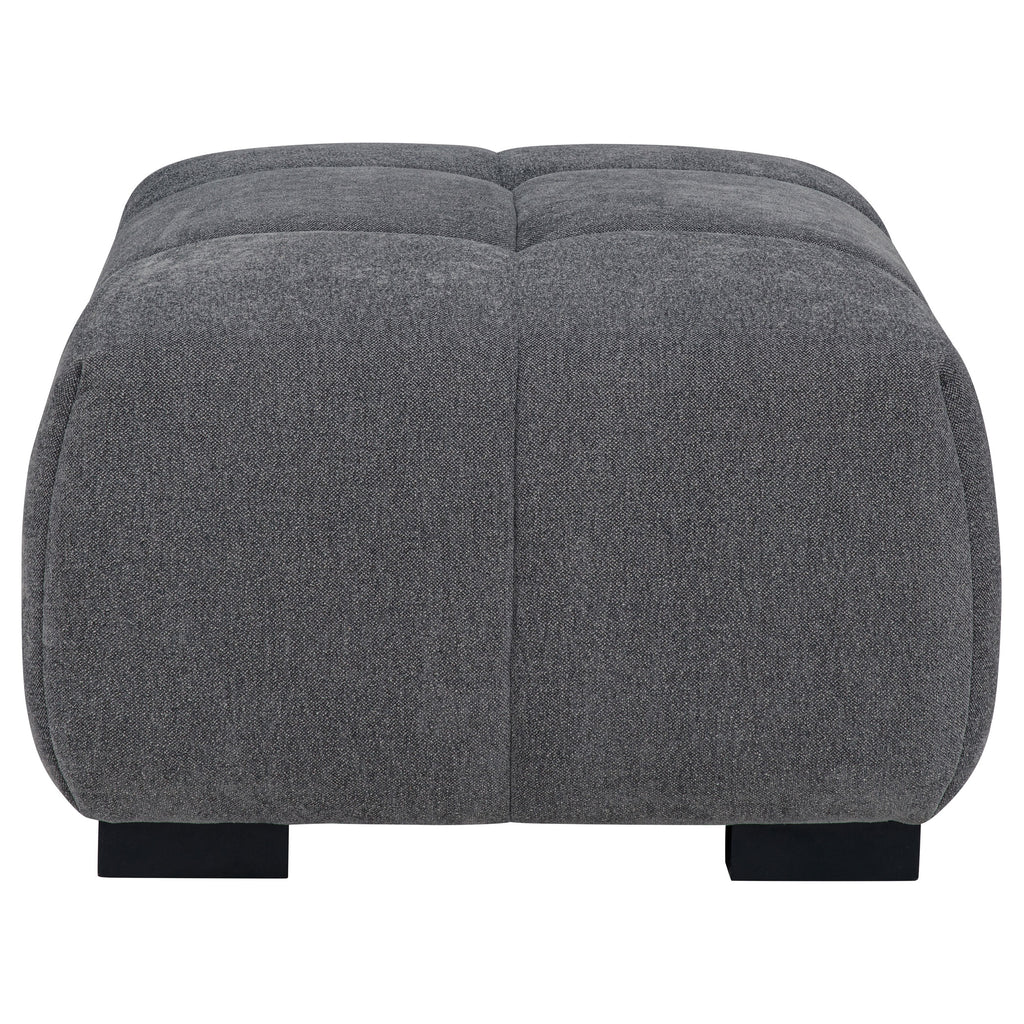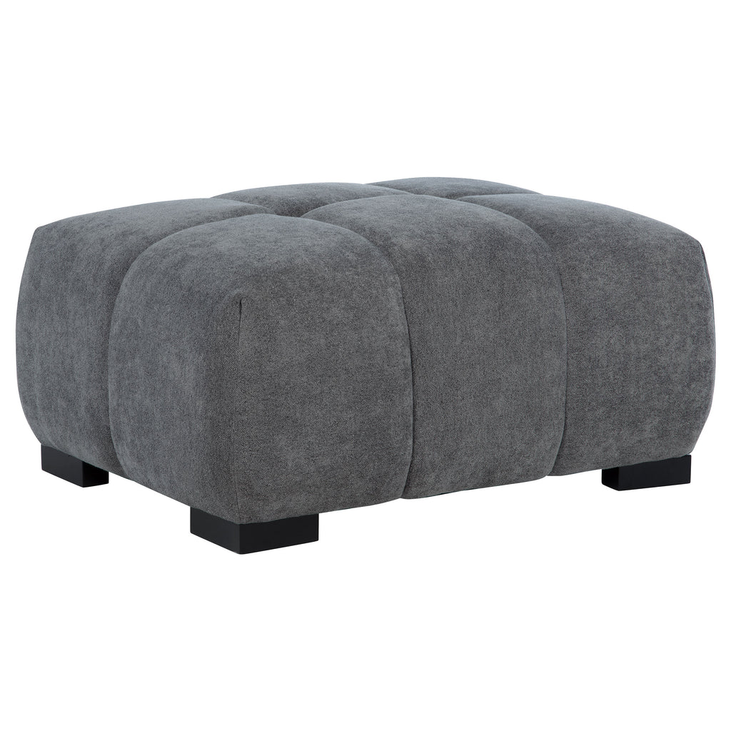 Add versatility and comfort to your seating area with this plush, mid-century inspired ottoman. Its soft, neutral upholstery and subtle grid tufting bring depth and texture to your décor, while a sturdy frame ensures lasting durability. Ideal as a footrest, extra seat, or even a makeshift coffee table. It adapts effortlessly to your needs. This ottoman’s timeless character and flexibility make it a cherished accent piece in any room. Key Features: • Ottoman in camel fabric showcases sculptural volume and plush vertical grid tufting • Waterfall-style cushioning flows across seat and sides for continuous softness • Layered foam construction provides comfort and structure for seating or lounging • Fully upholstered in smooth fabric for a cohesive, tailored modern finish • Low-profile black feet support the soft form while adding subtle contrast • Versatile as a footrest, coffee table, or modular companion to matching sectional