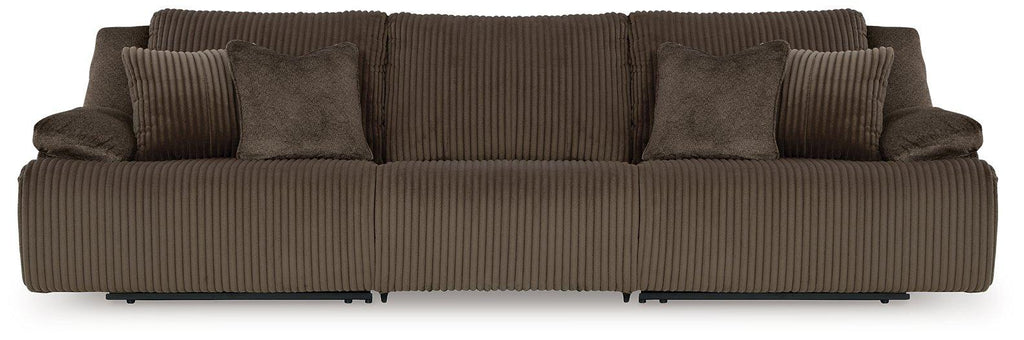 Experience unparalleled comfort with this reclining sectional sofa. It’s a stylish and invitingly soft look—made all the more appealing by cozy corduroy cushions that feel great and add a touch of texture. The rich chocolate brown upholstery effortlessly blends into your decor, making it a gorgeous addition to your home. So sit back and unwind in this spacious set, perfect for gatherings with friends and family.