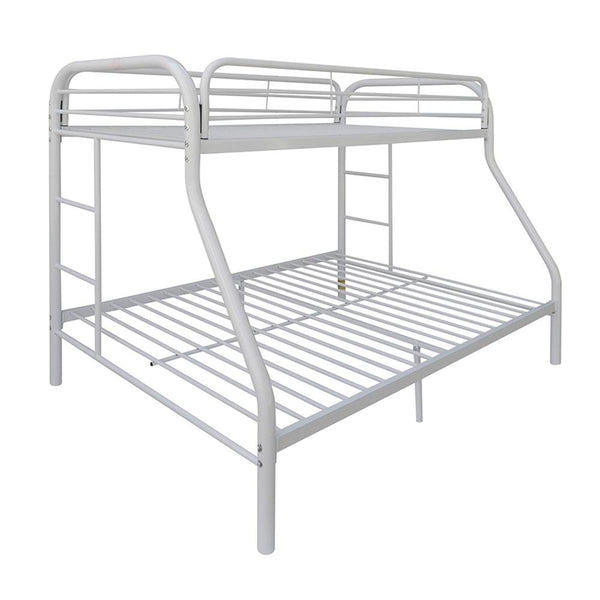 ACME Tritan Twin XL/Queen Bunk Bed, Black, 84" x 62" x 65"H, 95lbs. Bring home this Tritan twin XL over queen bunk bed to let your kids enjoy personal space without compromising on style. Superior quality metal for durability, built-in side ladders for easy access, and full length guard rails for safety. Choose from black, blue or silver finish such variety of colors makes it compatible with all types of decor settings. Features: - T XL/Q Metal Bunk Bed - Top Bed Requires XL Twin Mattress: 39"W x 80"L - Slat System Included - Built-in Side Ladders - Full Length Guard-Rail - 2" Metal Tube frame - Mattress Not Included - Assembly Required Materials: Metal